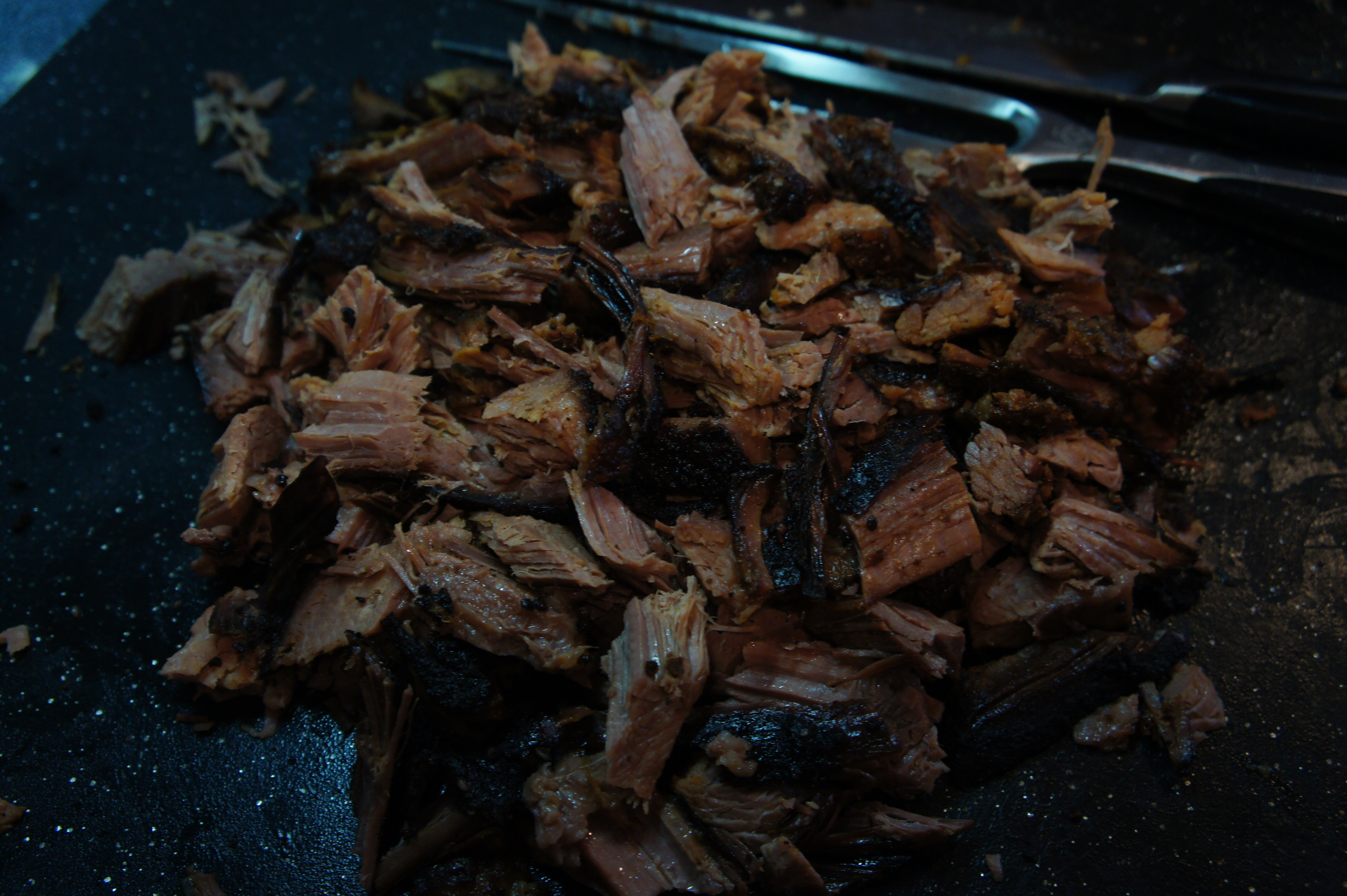 First brisket ever. Please excuse the lighting – we’ve since changed the intensity and spectrum of our kitchen lighting.