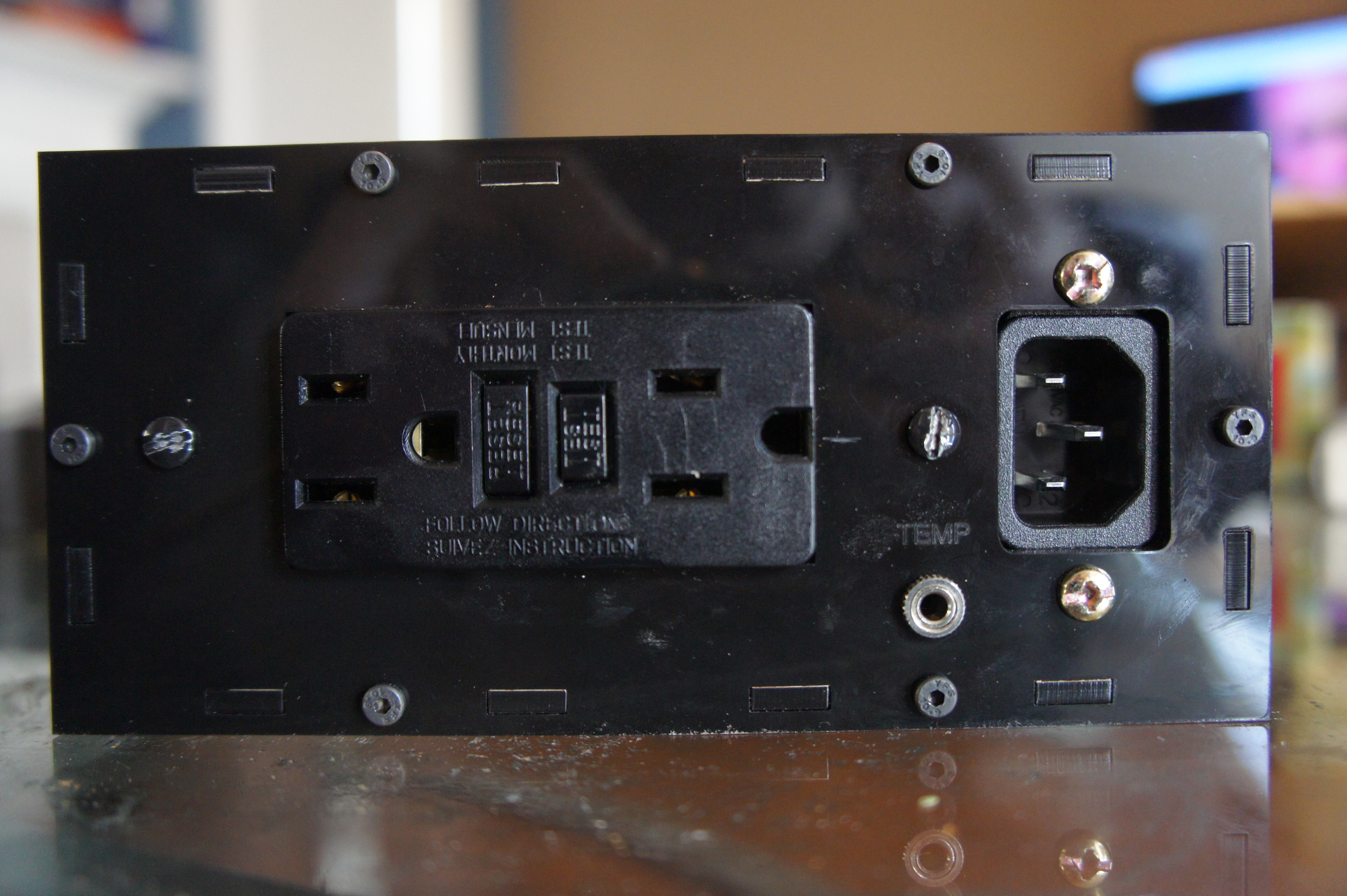 Rear of unit has GFCI outlet for heating elements, female AC socket for power, and 3.5 mm stereo jack for the thermocouple
