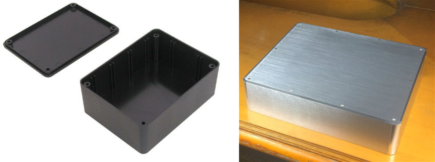 I got all the electronics together and tested everything – not on a breadboard, because of the scale of components, but on a piece of cardboard. I ensured all wiring and connectors near or inside the smoker were high-temperature rated and then started looking for a case. I wanted the unit to be as small as possible, while providing adequate heat dissipation for the solid state relay. Off-the shelf ABS enclosures, or ‘project boxes,’ looked cheap and ugly and were priced much too high for what you get. Aluminum enclosures I found were always too large or too small and hugely expensive. And with either, I would have to worry about cutting holes for various components: the female AC socket, the GFCI outlet, the PID controller, and the toggle switch.