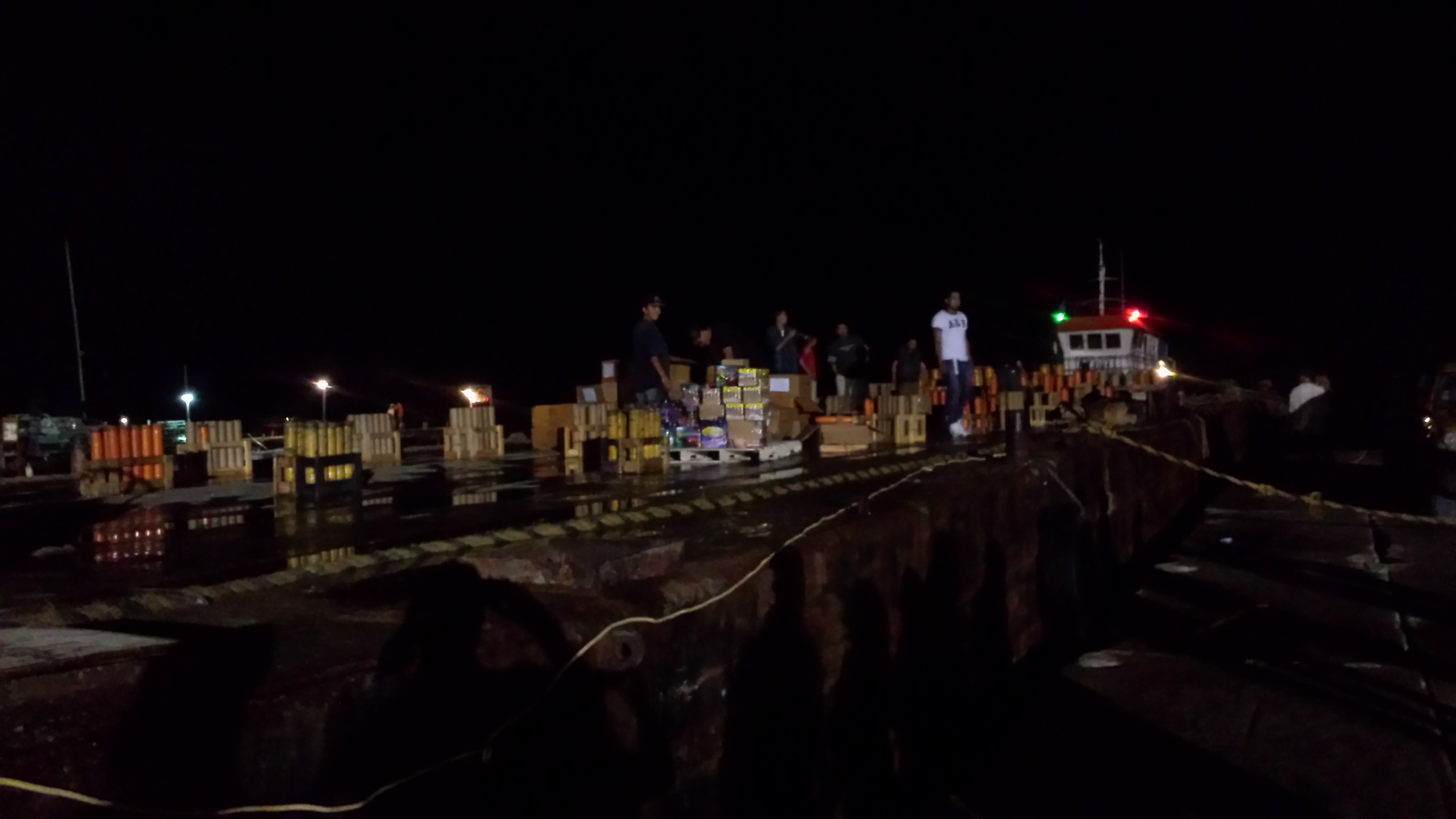 Trash barge, covered in fireworks, shortly before the New Year. San Pedro has a very impressive New Year’s fireworks show – much longer than most 4th of July displays!